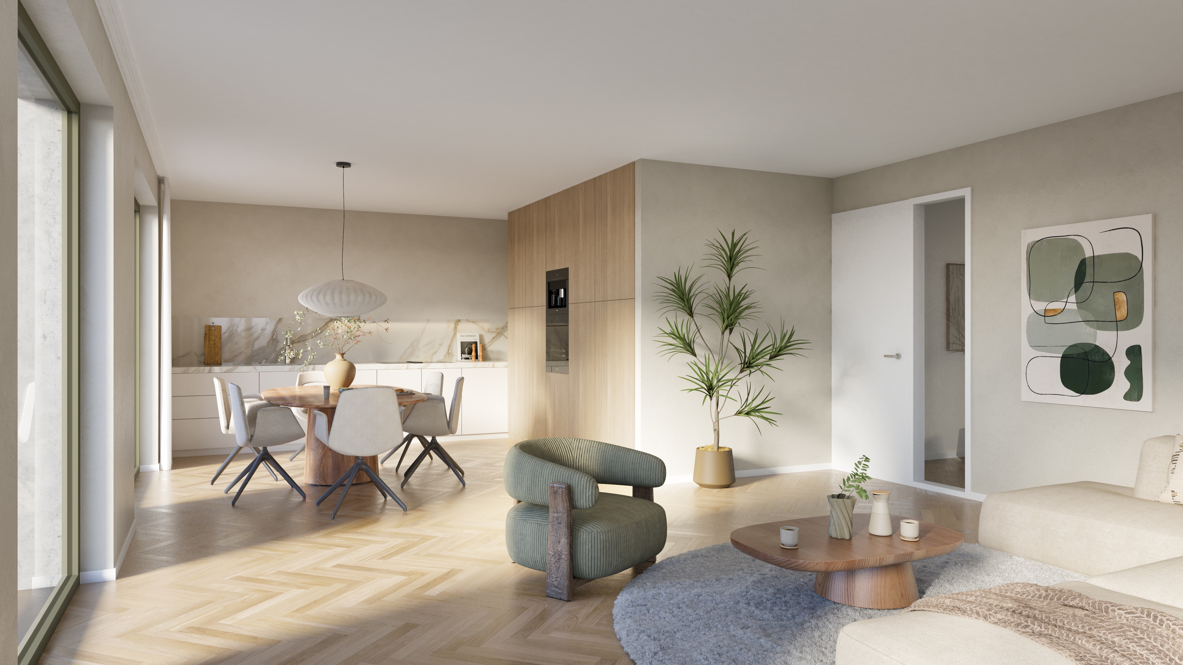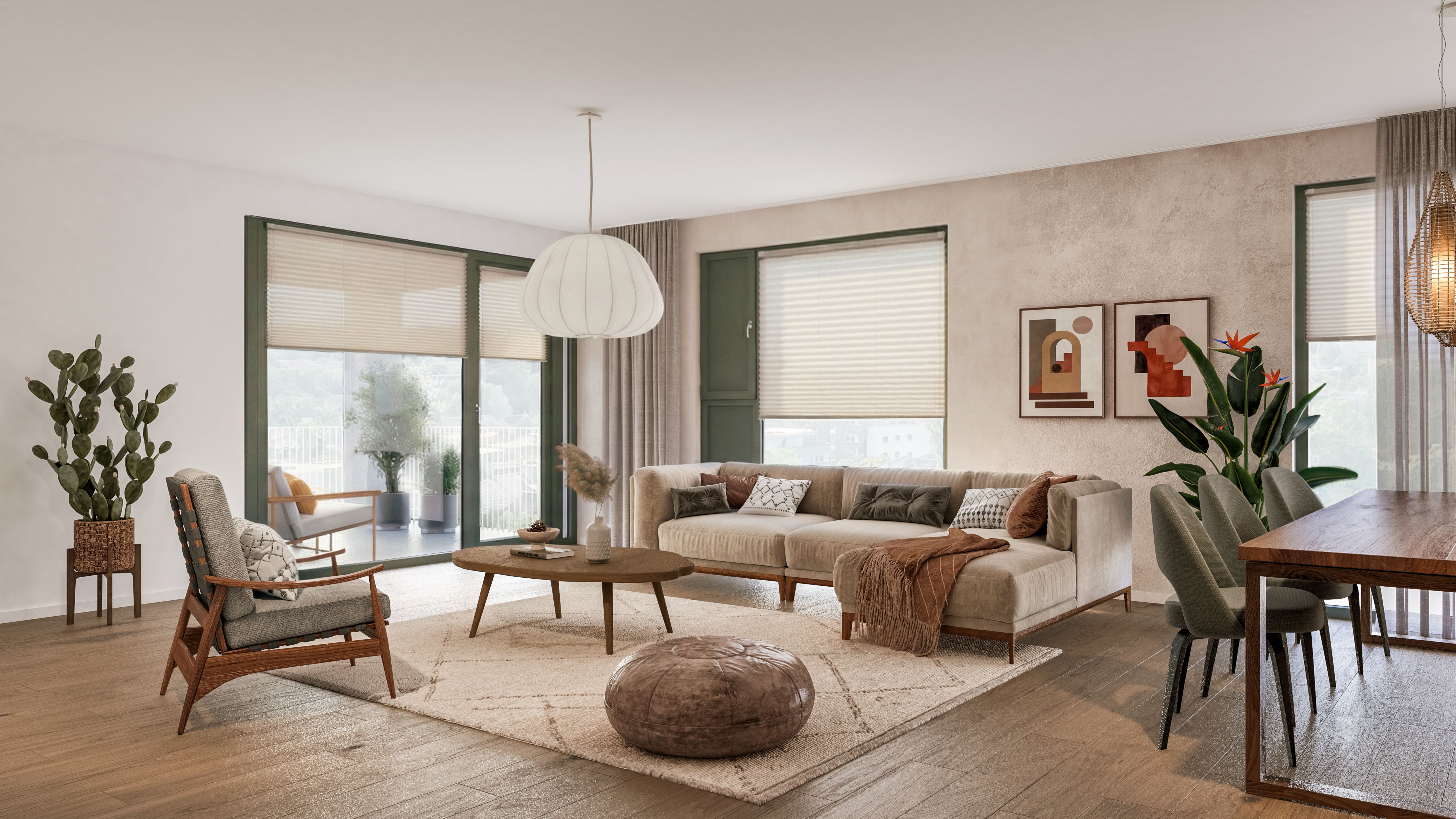 De gezinswoningen bieden ruime en lichte leefruimtes met een praktische indeling, ideaal voor comfortabel wonen met het hele gezin.